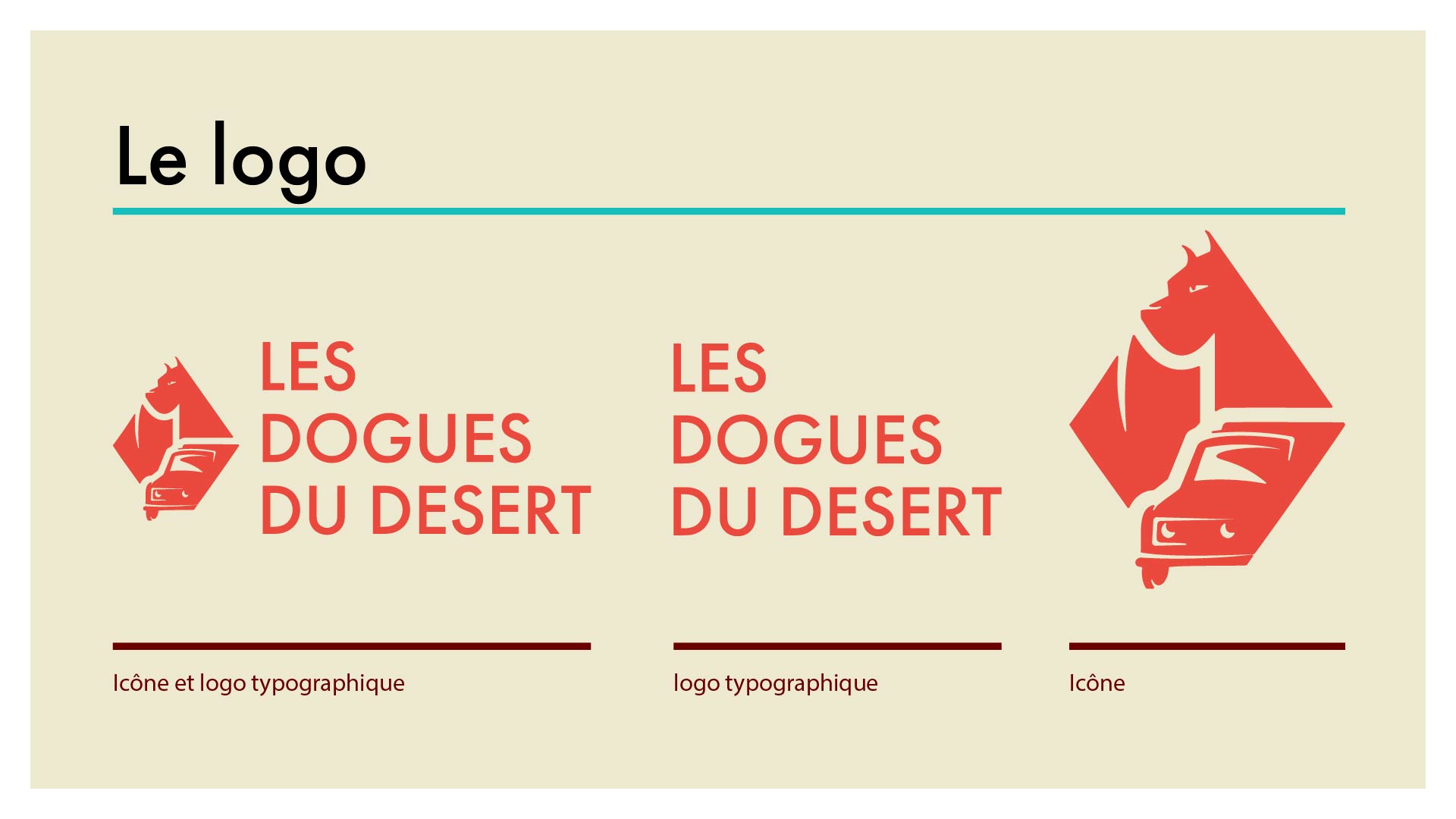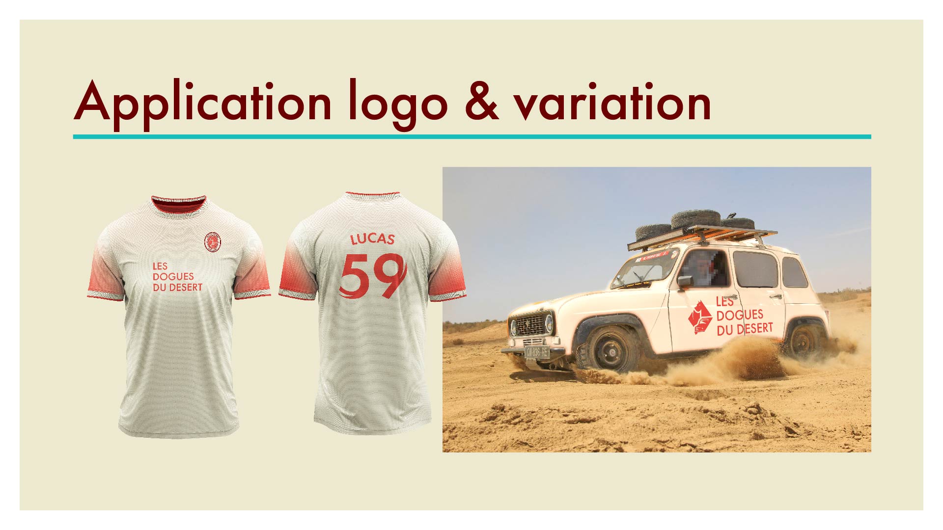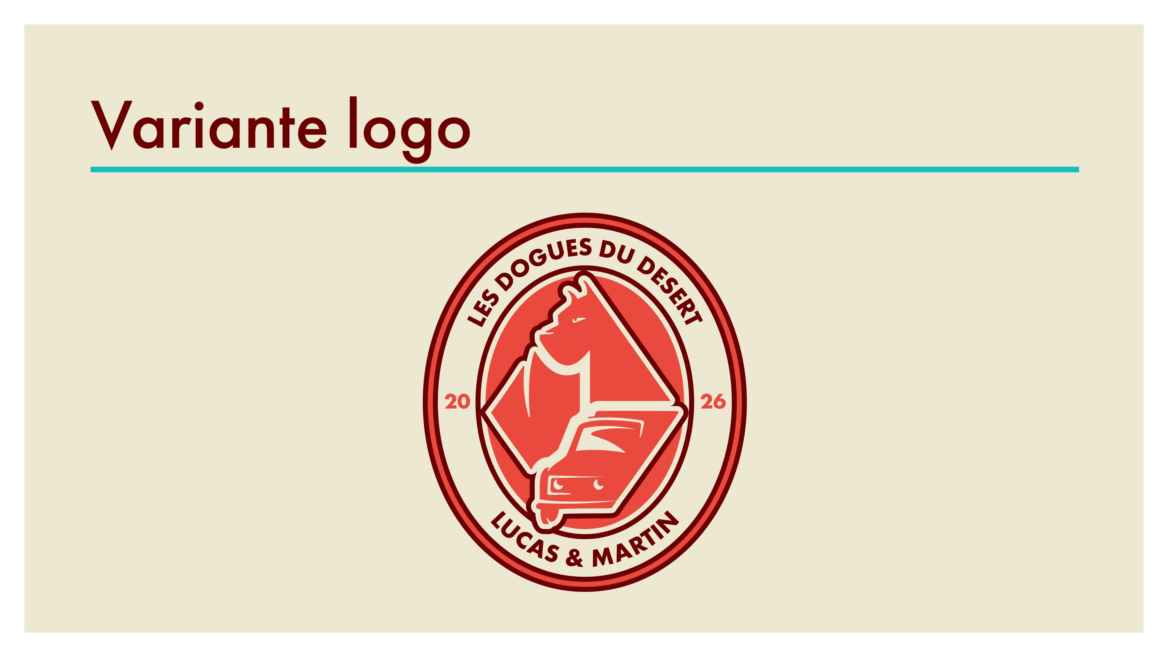 Le logo joue sur des formes simples, un tracé affirmé et une palette rouge sable, évoquant à la fois la robustesse du véhicule et l’univers désertique de la course.