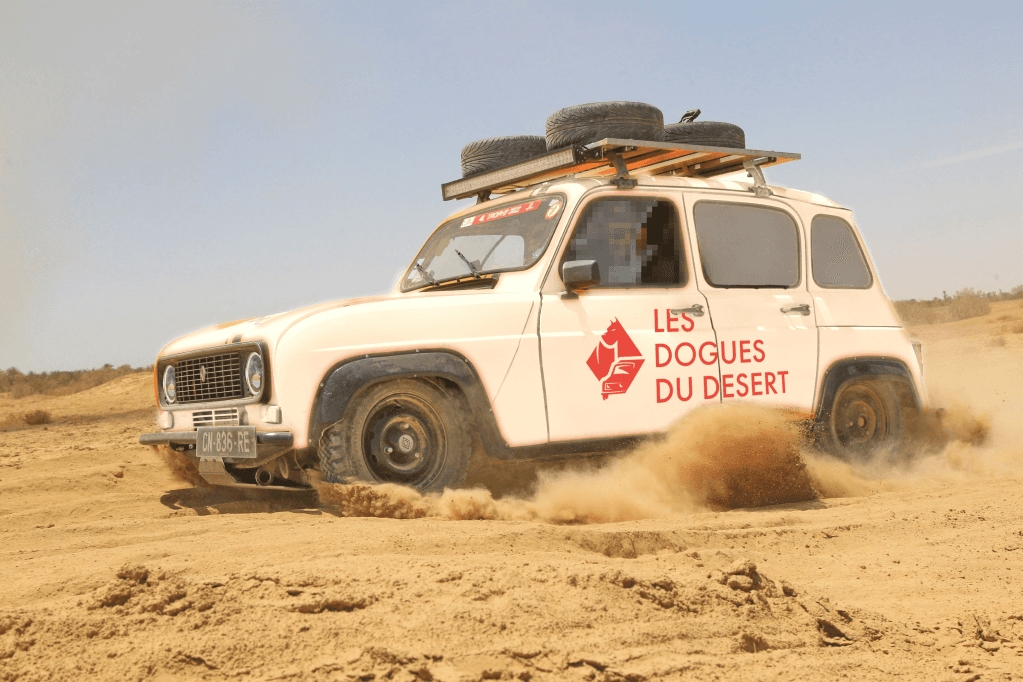 Dogues du Désert est un projet de branding réalisé pour un duo d’étudiants lillois participant au 4L Trophy 2026. L’identité visuelle s’articule autour d’un emblème illustrant un dogue stylisé et une 4L, fusionnés dans un blason aux codes sportifs et aventure.