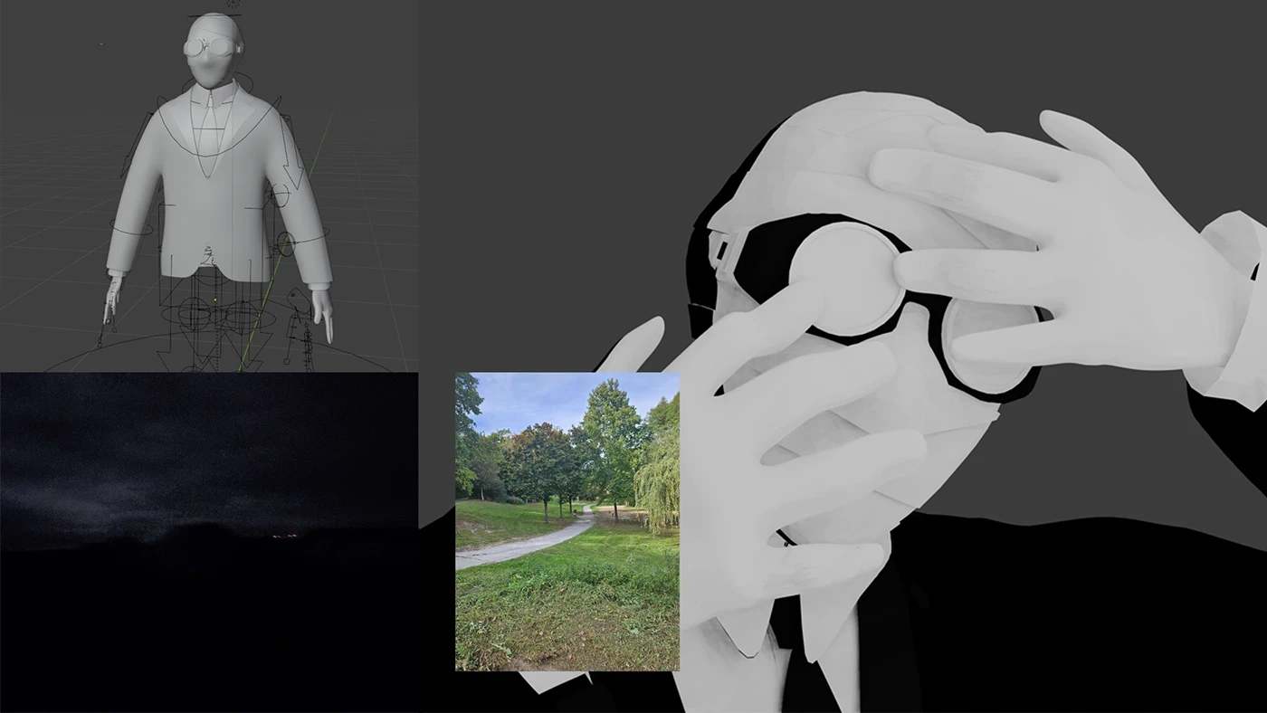 Griffin est un projet de modélisation et rigging 3D d’un personnage inspiré de Griffin, l’Homme Invisible, conçu pour la cover d’un single. J’ai travaillé une esthétique spectrale et glitch, jouant avec la lumière, la transparence et la déformation pour renforcer l’idée d’un corps présent mais insaisissable.